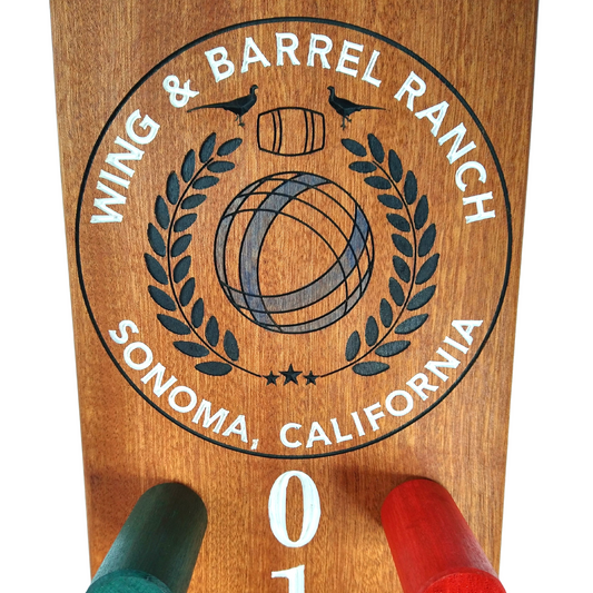 Custom logo bocce scoreboard | Your club logo engraved at top.