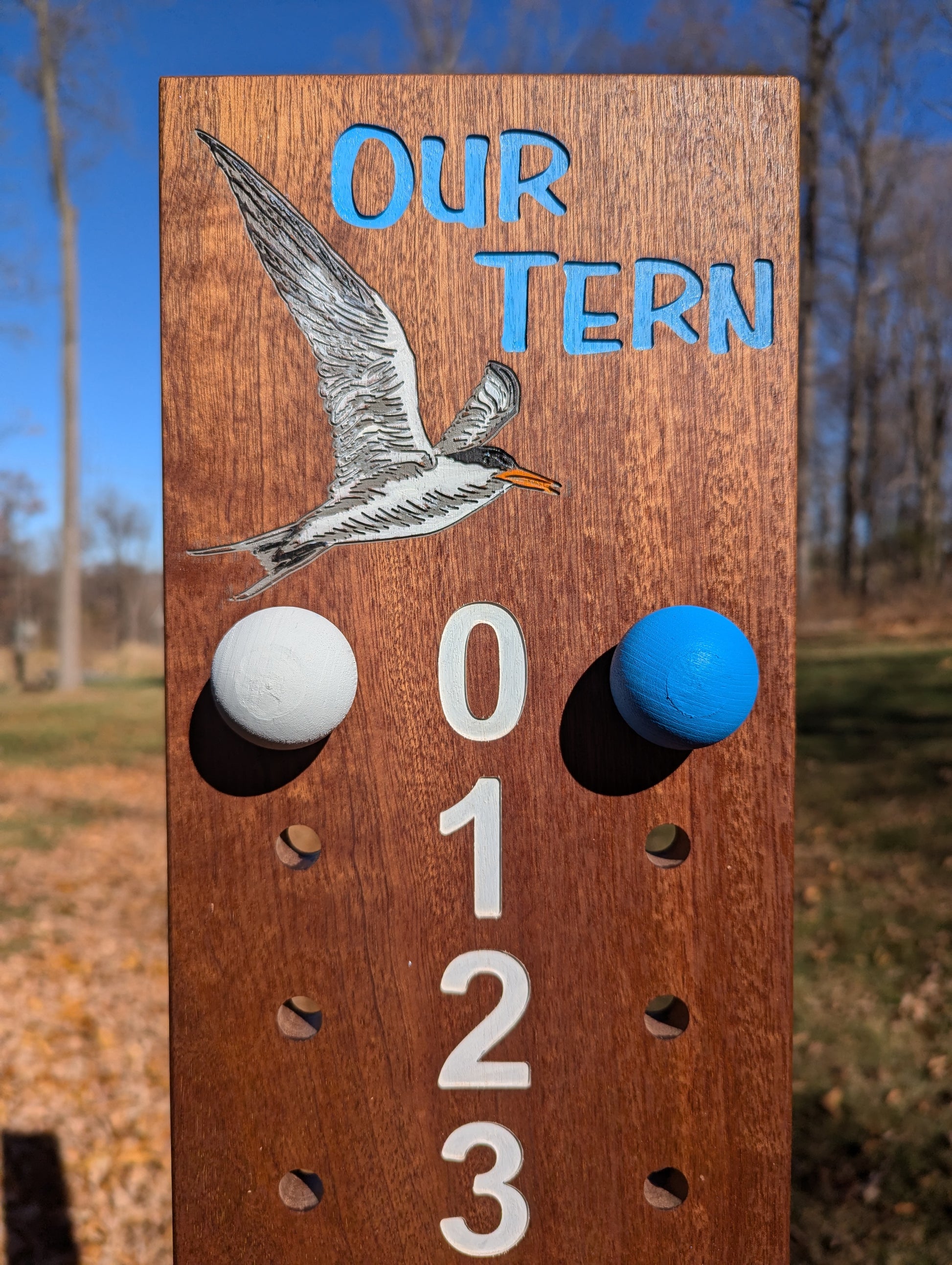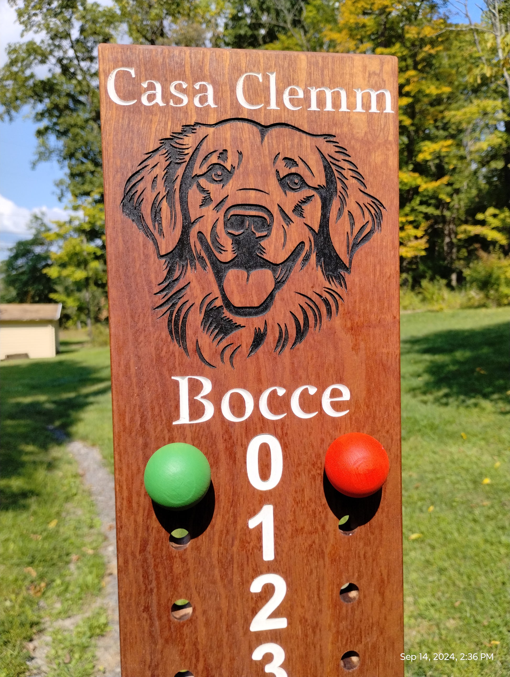 Custom logo bocce scoreboard | Your club logo engraved at top.