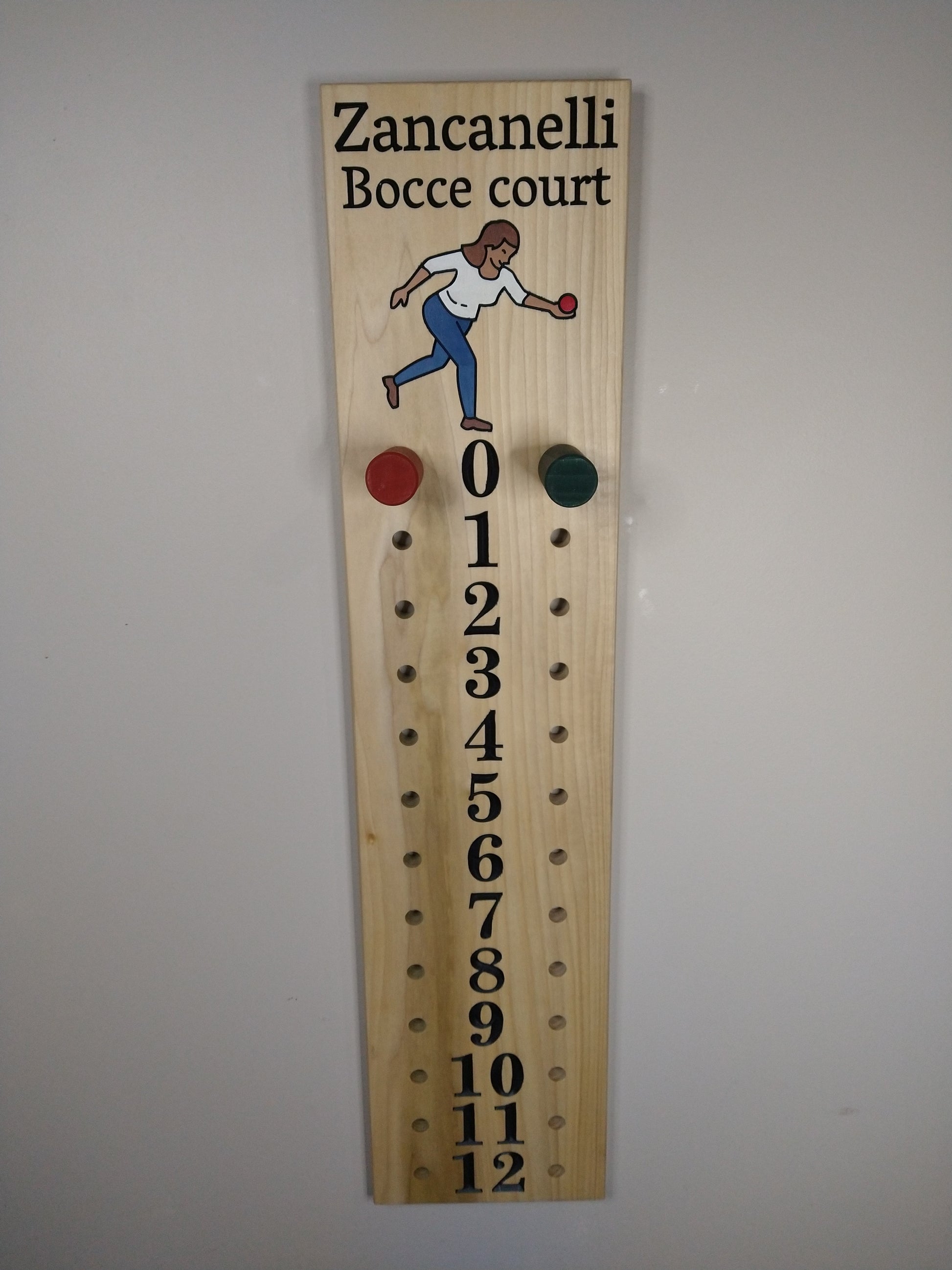 Personalized bocce scoreboard | Family name | Player image engraved.